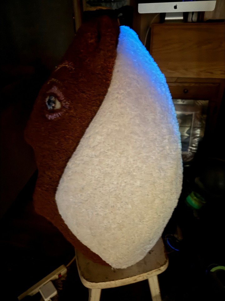 S Cadmus 3D large “facejug” piece. “MYSTY, THE FACEJUG MAKER’S Facejug urn”. Cadmus, 3D The hair glows in the dark. very strong piece. Could be made into a lamp base. White glows in the dark